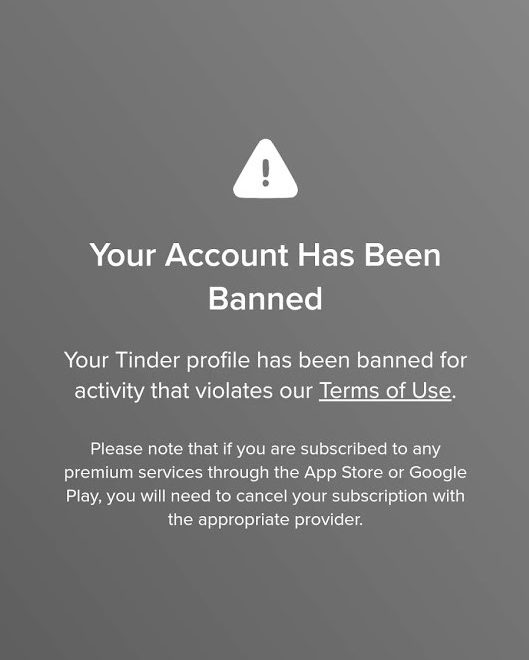 I encourage you all to reach out to the tinder support after you have read their terms and couldn’t find anything wrong with your behavior.